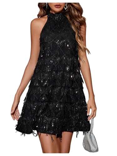 OYOANGLEThe OYOANGLE Sequin Sparkly Cocktail Dress is perfect for turning heads at any fancy occasion. This glittering sleeveless halter mini dress is your go-to for standout clubwear or party attire.