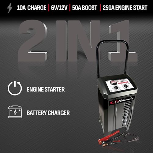 The Schumacher SC1445 Manual Wheel Charger with Engine Start is ideal for car owners who need to charge their car batteries quickly, efficiently, and safely. With its high capacity amperage and solid connections, this charger ensures that your car battery will be charged quickly without any interruption or danger of overcharging or damaging your battery.